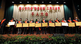 【本報(bào)訊】為兌現(xiàn)落實(shí)晉江市經(jīng)濟(jì)發(fā)展鼓勵(lì)扶持政策,支持引導(dǎo)企業(yè)做大做優(yōu)做強(qiáng),推動(dòng)民營企業(yè)“二次創(chuàng)業(yè)”,打造晉江“智造名城”名片。3月25日,晉江市打造“智造名城”工商企業(yè)界千人大會(huì)在晉江市委黨校舉行,大會(huì)表彰了數(shù)十家2012年度納稅超千萬元企業(yè)以及在產(chǎn)業(yè)創(chuàng)新、對(duì)外貿(mào)易、科技創(chuàng)新、品牌建設(shè)等領(lǐng)域做出突出成績(jī)的先進(jìn)企業(yè)。我司以納稅超億元,產(chǎn)業(yè)、科技技術(shù)上的眾多創(chuàng)新成果榮獲晉江市2012年度經(jīng)濟(jì)發(fā)展先進(jìn)企業(yè),施能坑董事長(zhǎng)、張?zhí)锔笨偛贸鱿碚么髸?huì)。